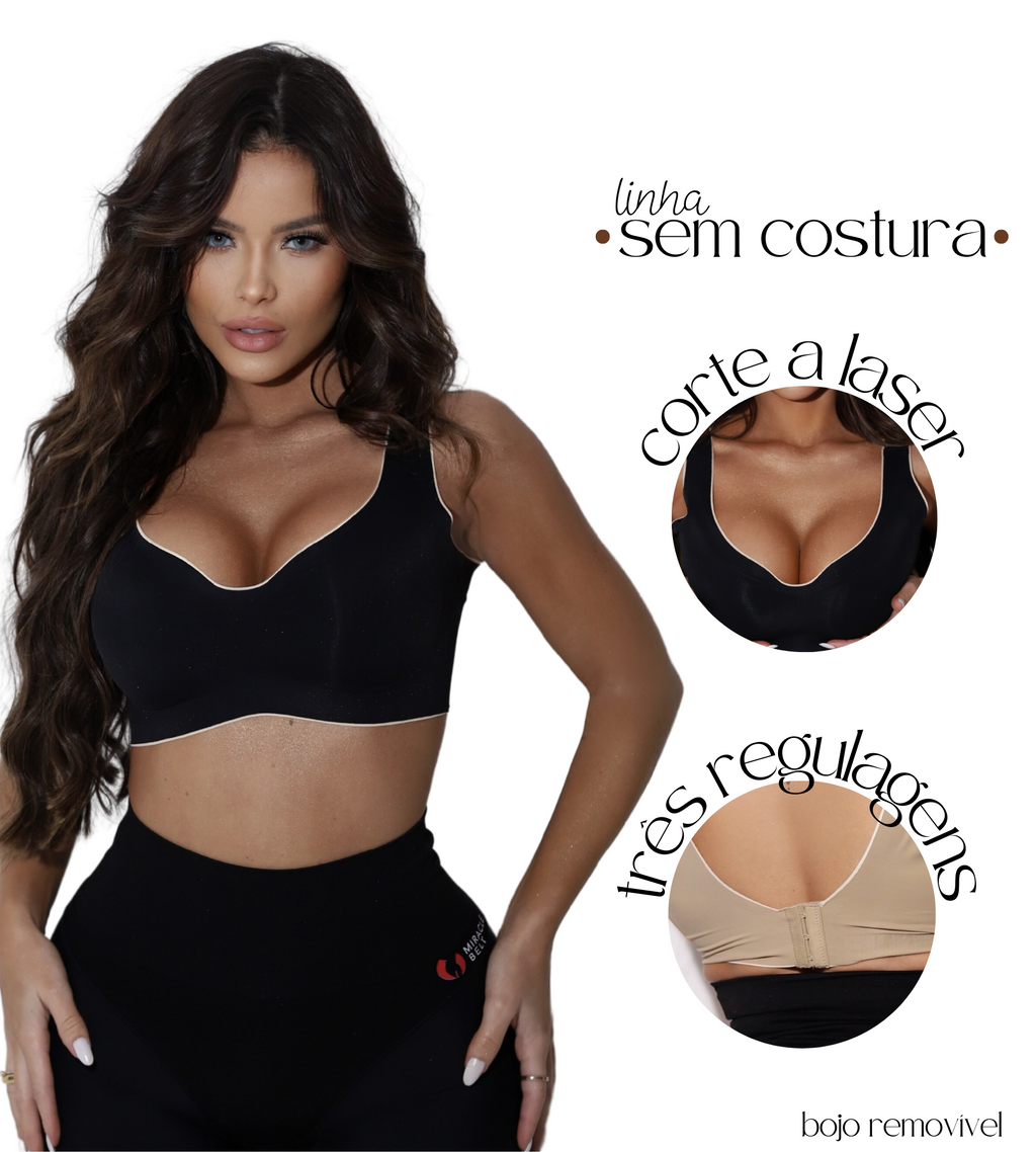 Sutiã com corte a laser design único, suas alças largas e laterais amplas disfarçam as gordurinhas indesejadas das costas, proporcionando maior sustentação e conforto, possui bojo removível, rico em detalhes com leve sobreposição de cores na parte do busto. Fechos possuem 3 regulagens de ajustes.